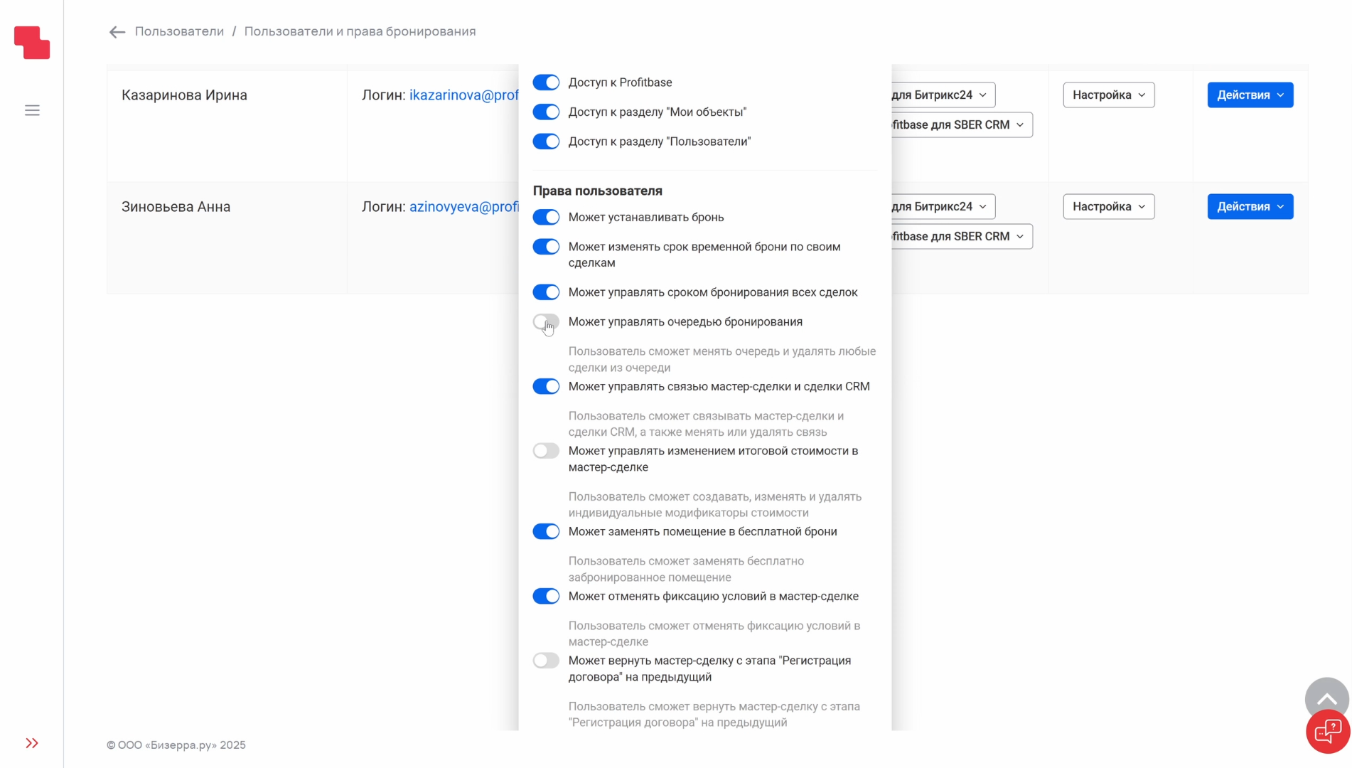 В Profitbase действует ролевая модель. Вы настраиваете, какие действия доступны каждому сотруднику. Например, руководители и ведущие менеджеры редактируют условия сделки, а юристы могут возвращать сделку только на этап подготовки документов.