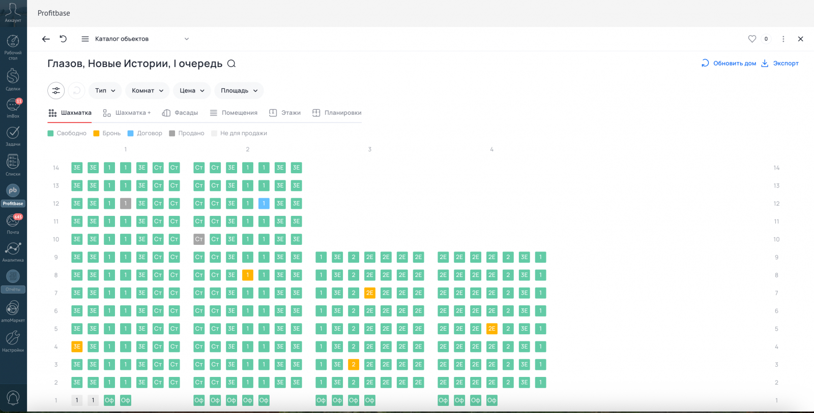 В результате партнёр-интегратор Profitbase Amopoint внедрил систему продаж, в которой сделки, лоты, коммуникации и аналитика работают в одном процессе.