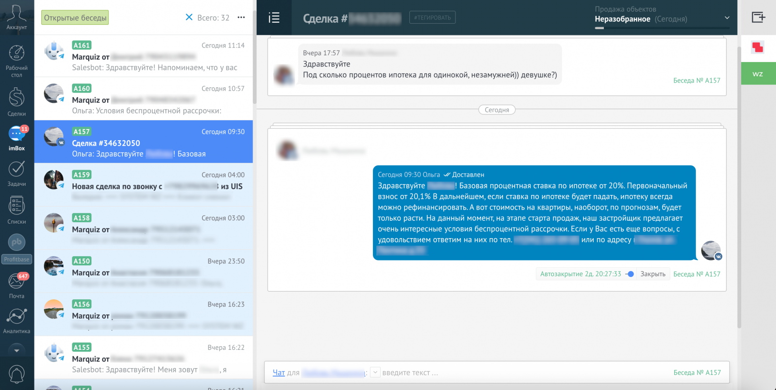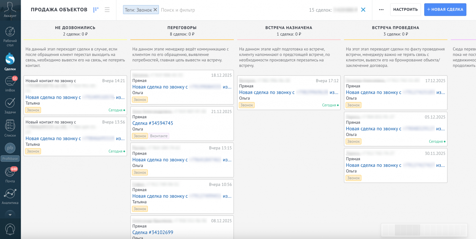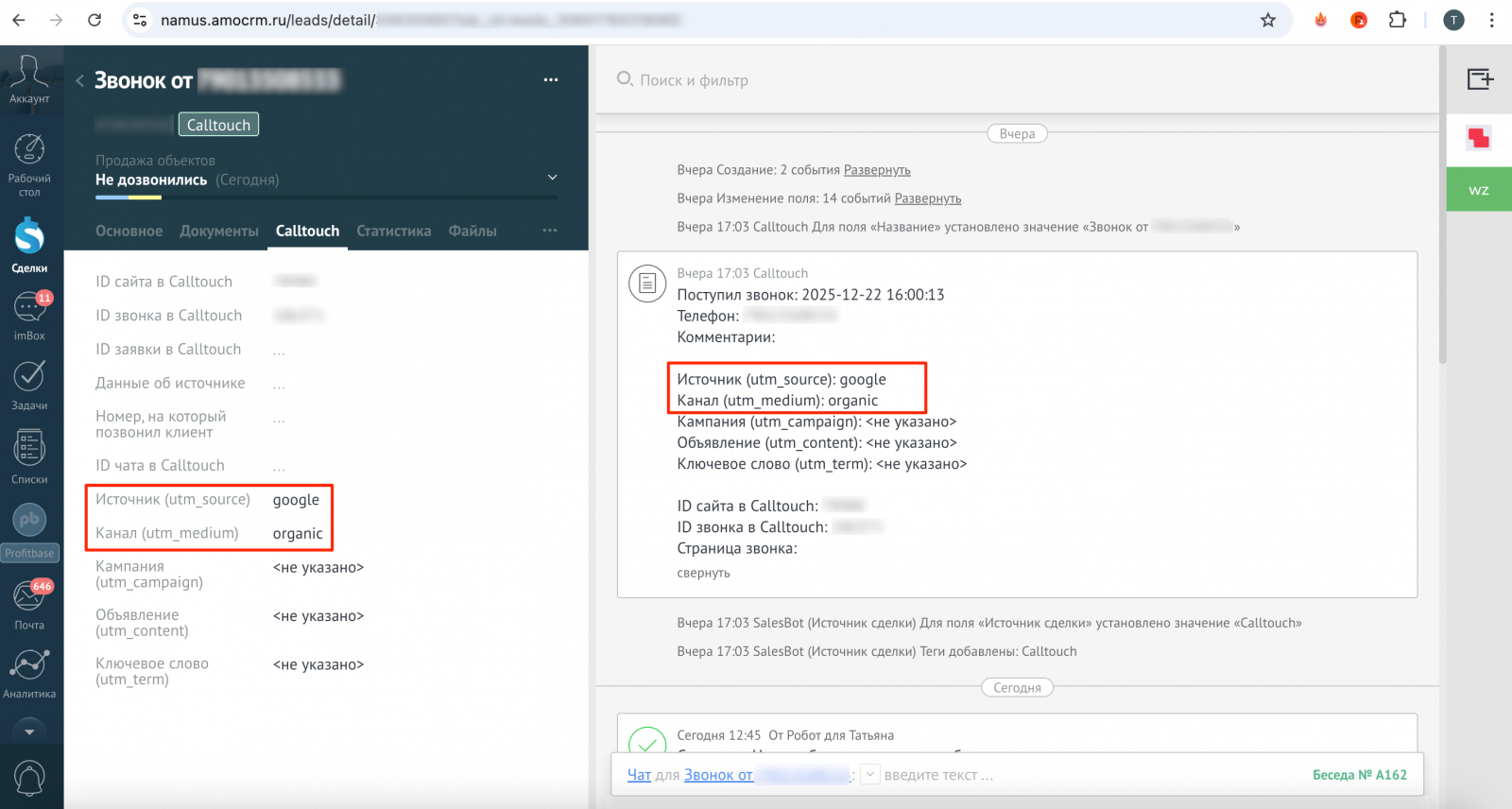 Пропущенные обращения обрабатывались по единой логике. Звонки и сообщения фиксировались в системе автоматически и не требовали от менеджеров отдельной ручной записи.